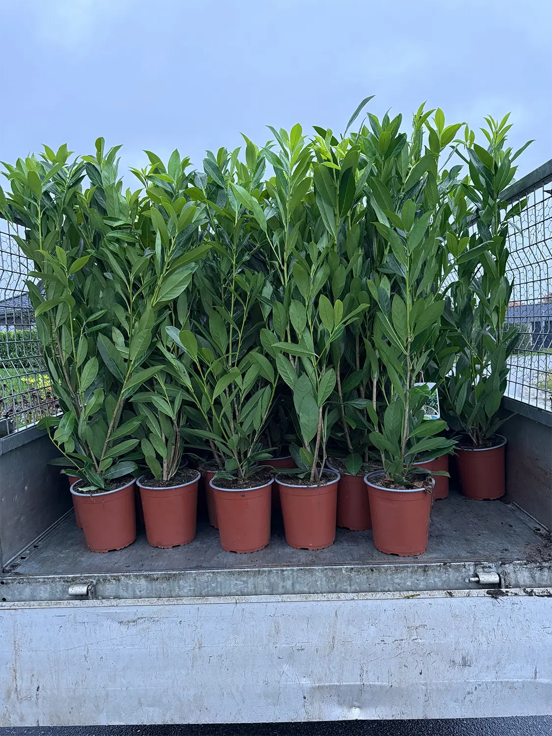 Vi har forberedt og plantet en ny kirsebærlaurbær hæk med præcis opmåling og ensartet planteafstand, så der opnås en tæt, stedsegrøn afskærmning. Billederne viser levering af kirsebærlaurbær i potter, udlægning langs snor og afmærkning, samt etablering af et sammenhængende plantebælte med klargjort rende og løsnet jord. Der er fokus på lige linjer og korrekt plantedybde, så rødderne får god kontakt med jorden og planterne står stabilt fra start. Efter plantning er jorden samlet og tiltrykket, så hækken etablerer sig hurtigt og kan klippes tæt, når den er vokset til. Løsningen er velegnet til nybyg, parcelhuse og større grunde, hvor man ønsker læ, privatliv og en grøn afgrænsning året rundt.