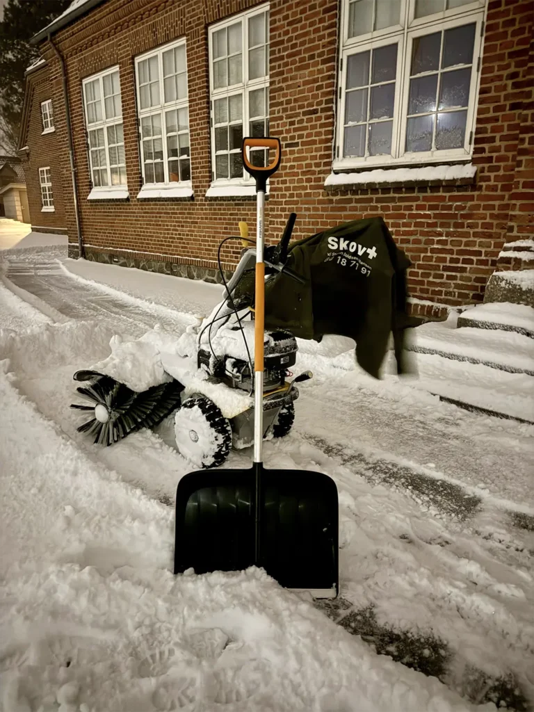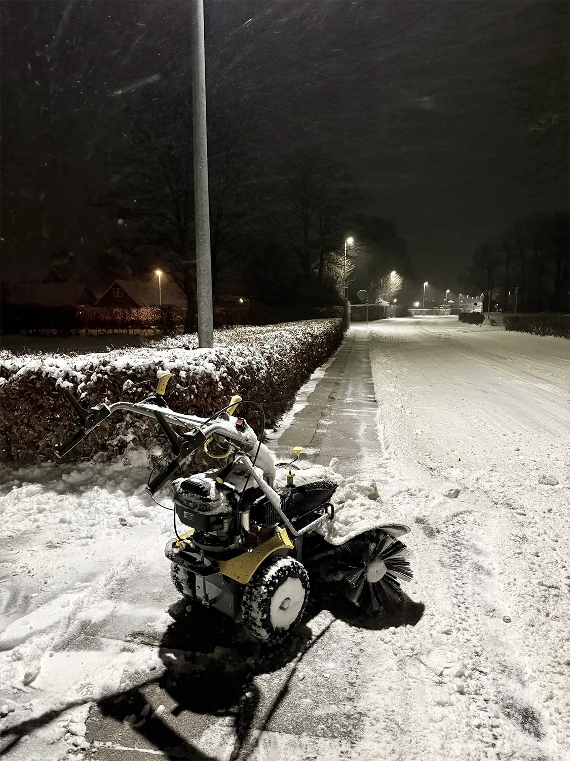 Vi har udført snerydning ved Gedved Seminarium med fokus på sikre adgangsveje, ryddede stier og effektiv håndtering af både snefald og isslag. Billederne viser maskinel rydning af store områder, præcis feje-/kostning af fortov og sikre ruter for studerende og personale i vintervejr. Arbejdet omfatter løbende rydning, saltning og forebyggelse af glatføre, så området forbliver sikkert hele døgnet. Løsningen er tilpasset institutionens behov og sikrer stabil drift gennem hele vinterperioden.